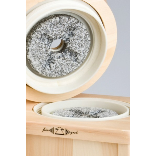 Бесступенчатая регулировка степени помола происходит поворотом бункера для зерна