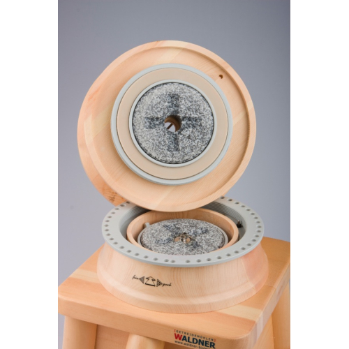 Бесступенчатая регулировка степени помола происходит поворотом бункера для зерна