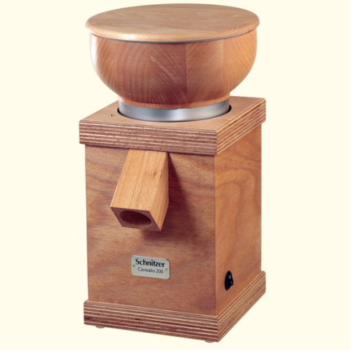 Мельница Cerealo 200 - Natur- эта мельница имеет сверхмощный промышленный мотор мощностью 600 Ватт. Новая современная мукомольная техника позволяет получать 200 г муки тончайшего помола в минуту. Корпус Cerealo 200 изготовлен из прочной буковой фанеры, а воронка, крышка воронки и трубка для выхода муки – из натурального массива бука.