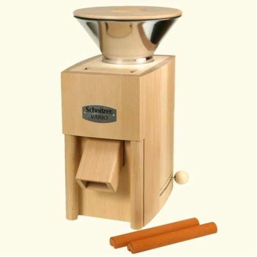 Мельница и зернодавилка VARIO фирмы Schnitzer с металлической воронкой из нержавеющей стали