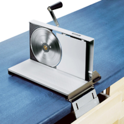 Высококачественная компактная ломтерезка из легкого металла, со складывающейся ручкой, круглым ножом из нержавеющей стали диаметром 170 мм.