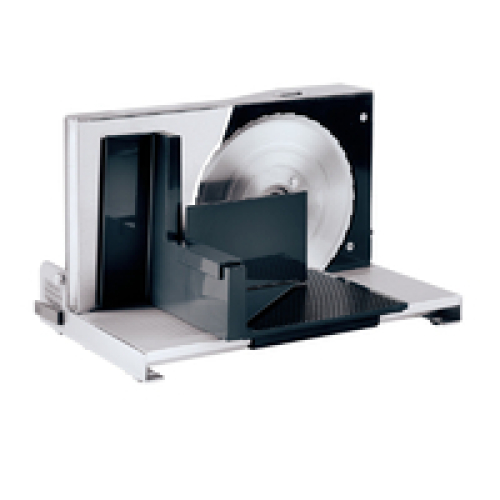 Топ-модель компактных ломтерезок, из высококачественной полированной нержавеющей стали, с шарнирной механикой, нож диаметром 170 мм с долгим сроком службы и отличными режущими свойствами, выключатель для кратковременного и продолжительного режима работы. Надёжная центральная регулировка толщины нарезки. Салазки, держатель и поддон для продуктов входят в комплект поставки.