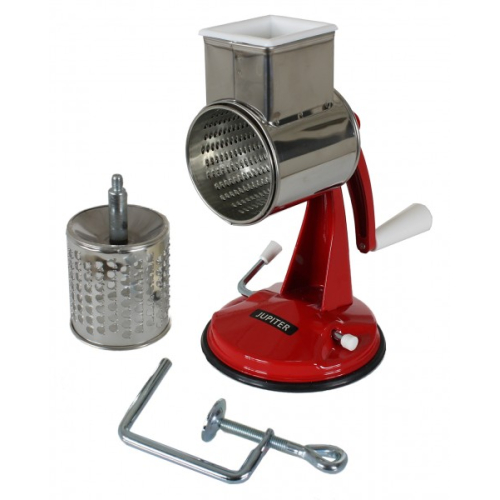 Большая площадь вакуумной присоски и крепкий зажим  для обеспечения надежного и безопасного крепления . Барабаны диаметром 70 мм. В комплекте с  барабанной теркой с тонкой решеткой