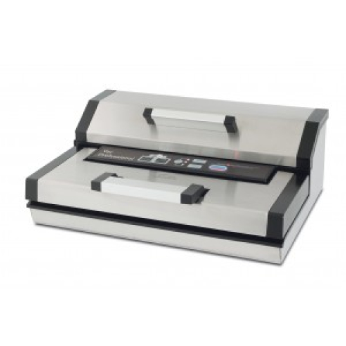 Профессиональный вакуумный упаковщик с функцией маринирования, практичным отсеком для рулона, интегрированным ножом и корпусом из нержавеющей стали.